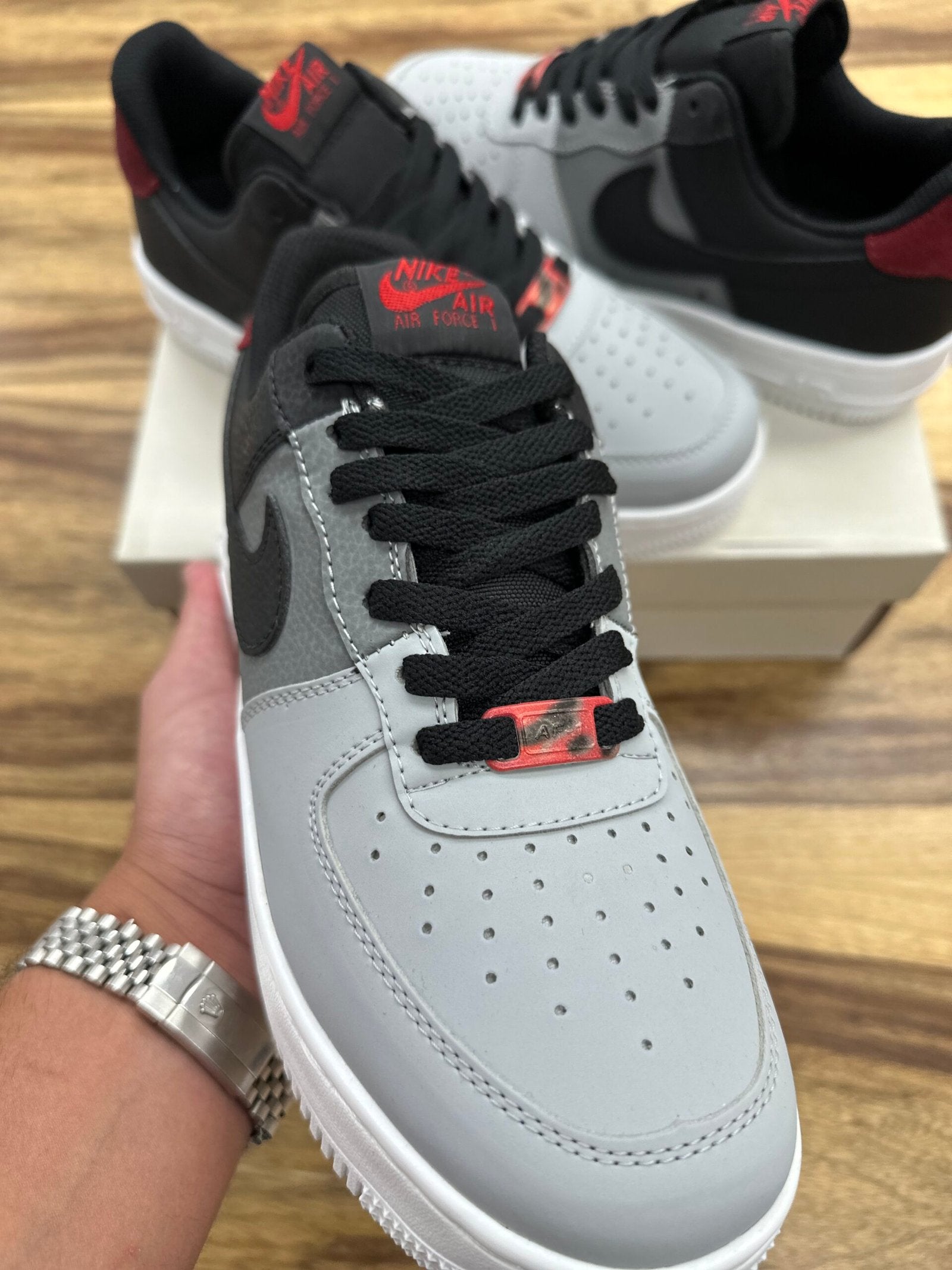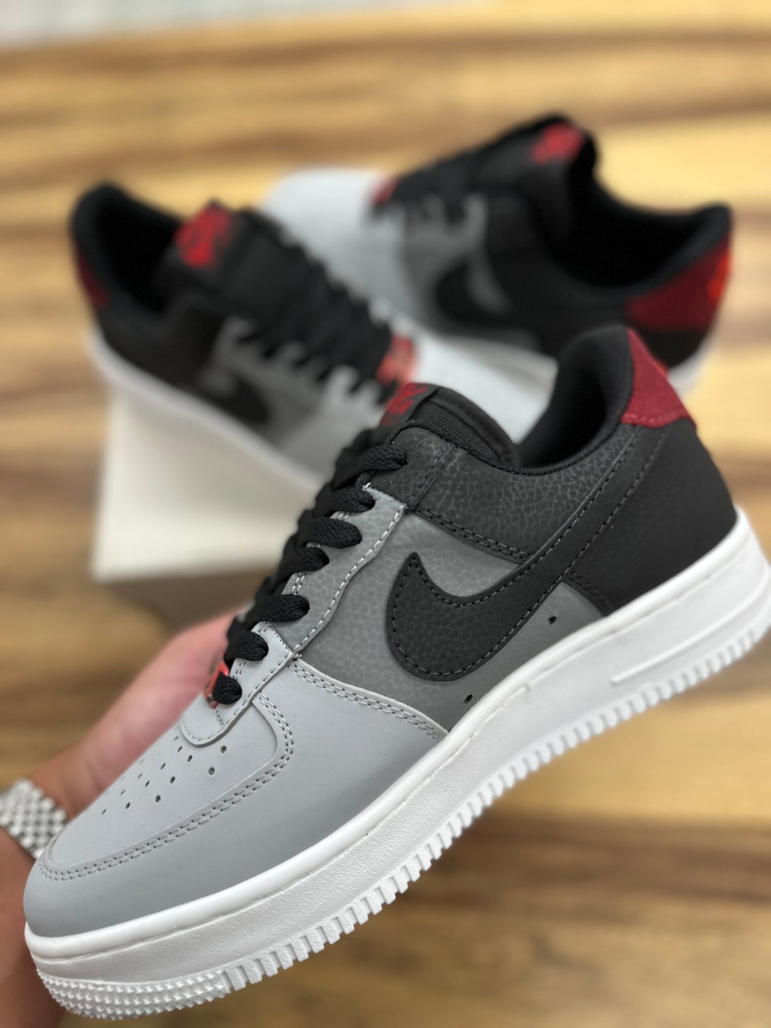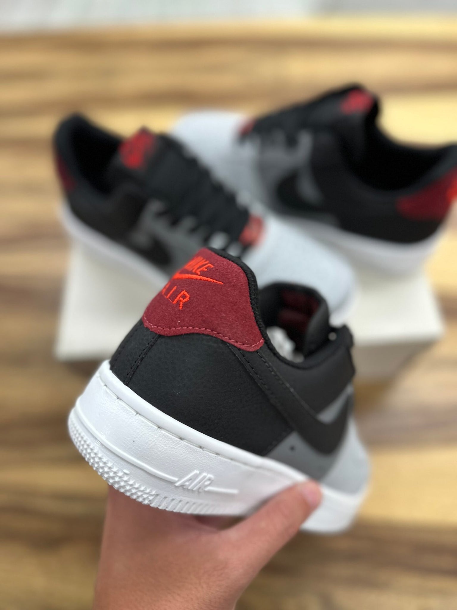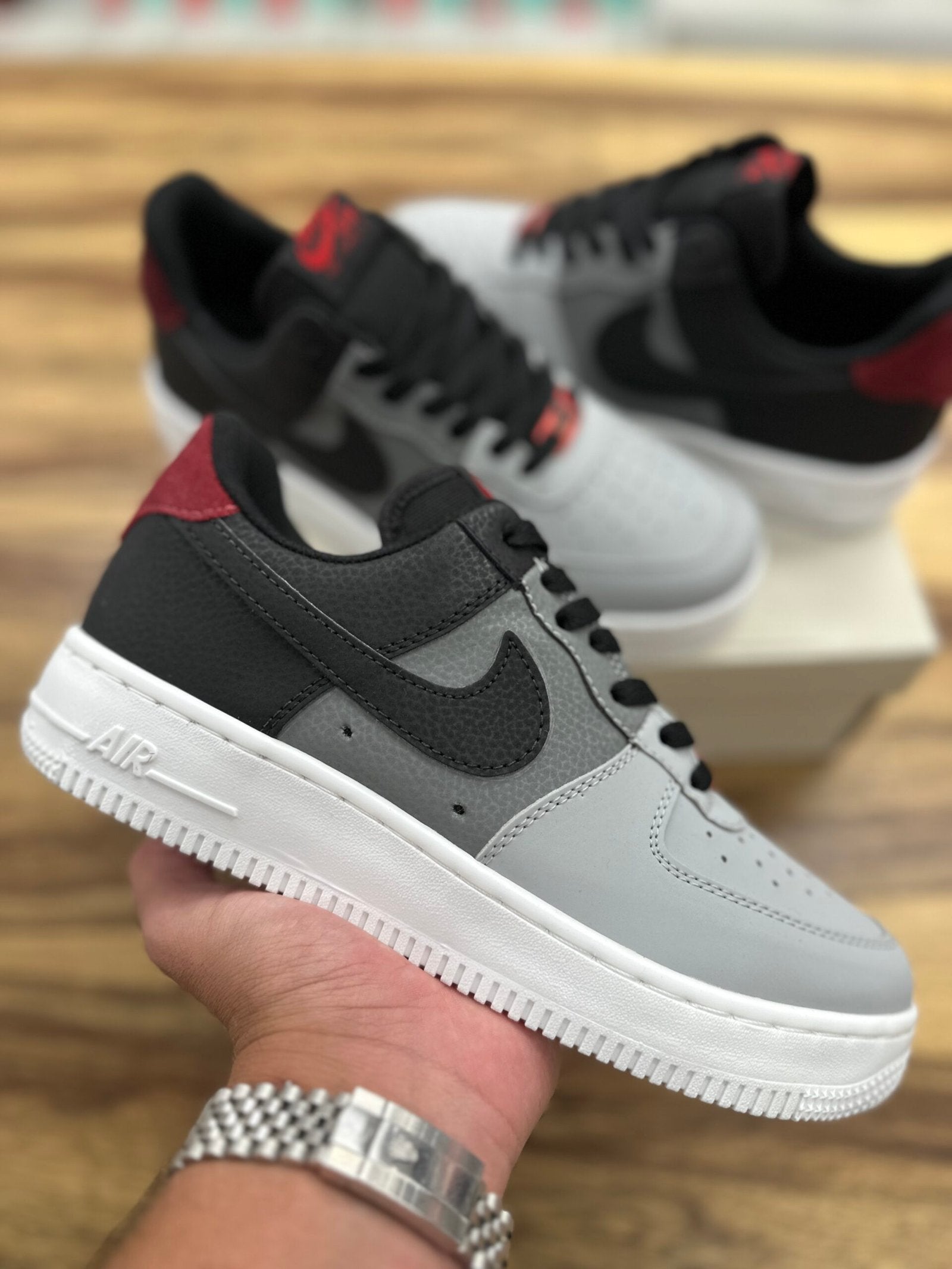 דגם ה–Air Force 1 Black/Grey Bordeaux מביא איתו שילוב צבעים שמושך את העין מהרגע הראשון. החלק העליון בצבעי אפור ושחור יוצר מראה נקי וחד, והנגיעות בבורדו בעקב מוסיפות עומק וסטייל שמבליט את הדגם מכל השאר.
