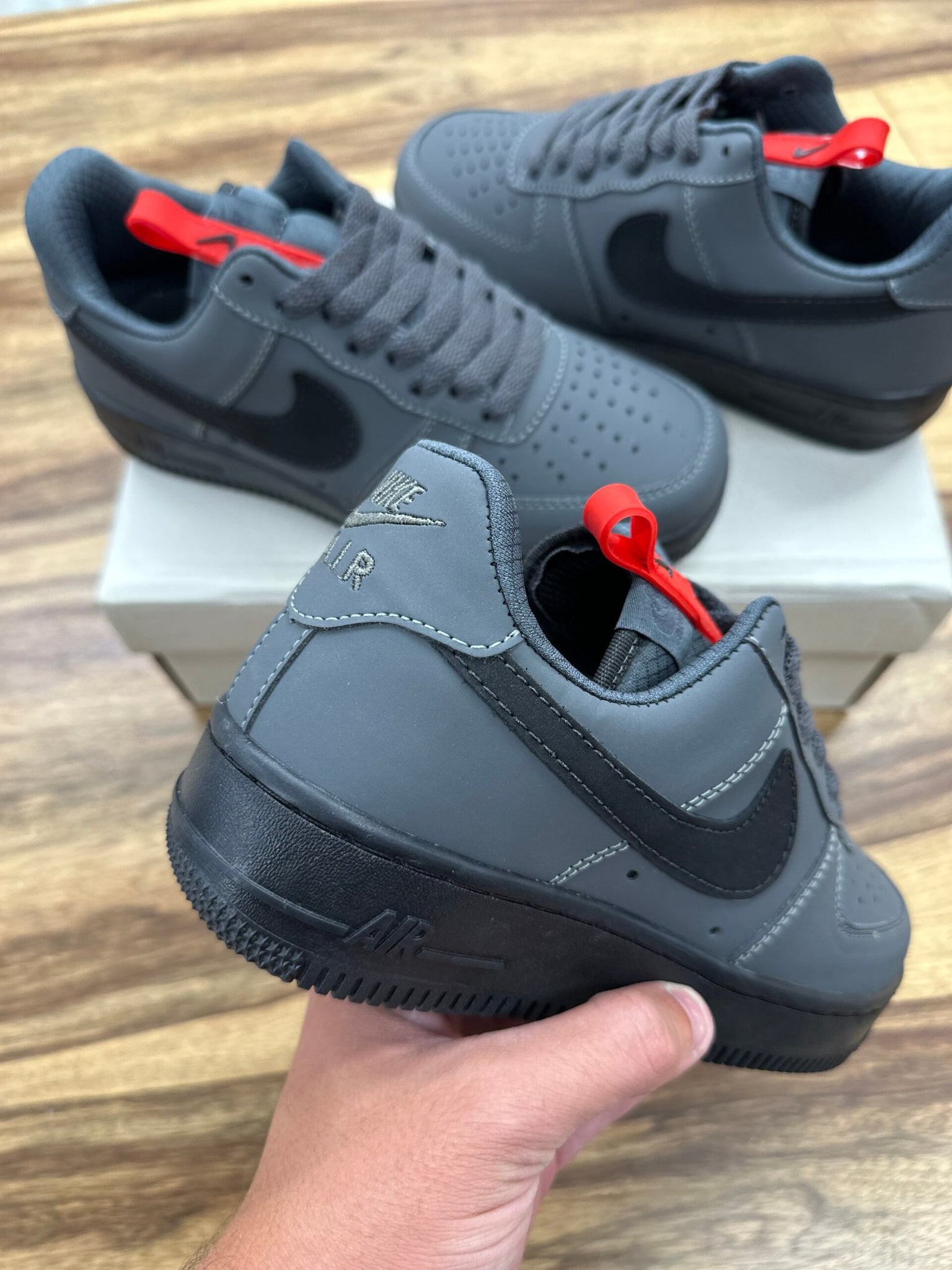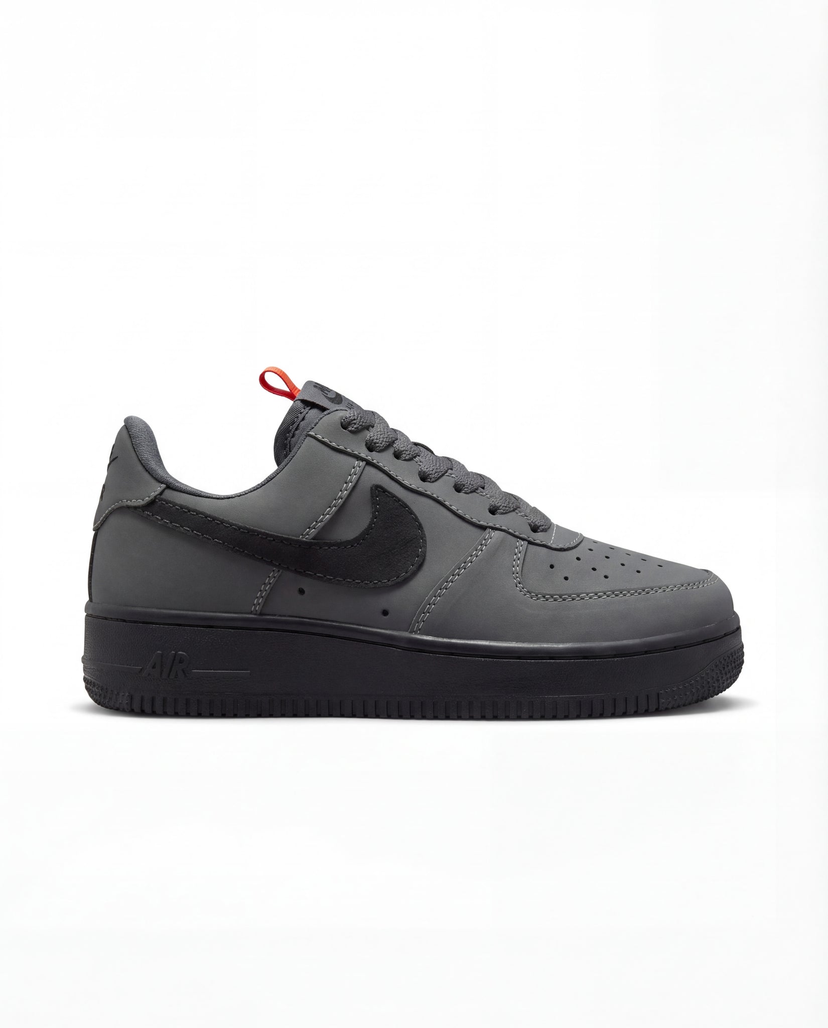 דגם ה–Air Force 1 אפור כהה הוא הבחירה המושלמת למי שמחפש לוק ייחודי ולא שגרתי. הצבע האחיד והעמוק מעניק מראה נקי ומתוחכם, והסוווש השחור עם התפרים הבולטים מוסיף עומק ועיצוב שכולו סטייל.